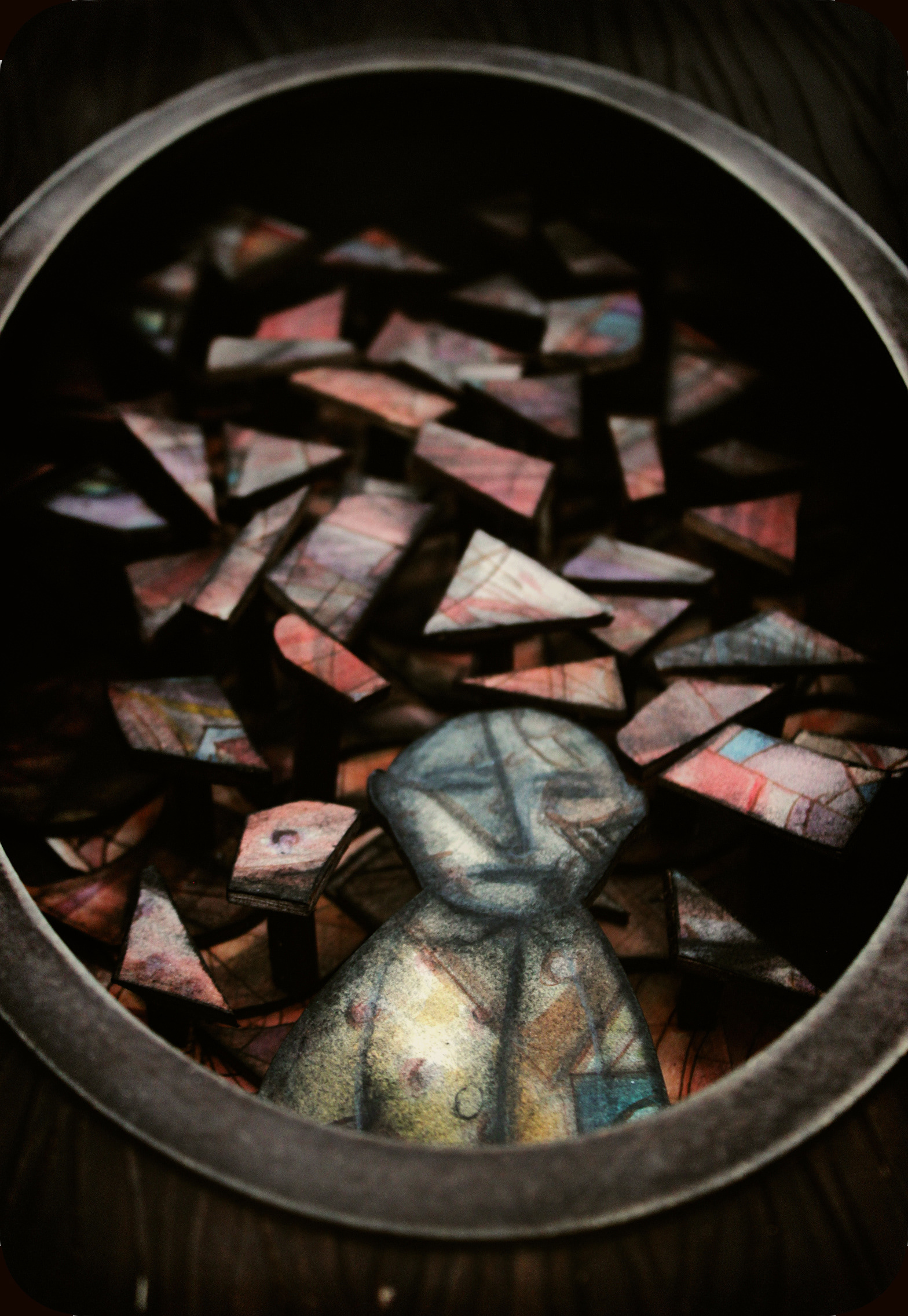 Materials: balsa, aquarelle, acrylics, paper, ink, wood, all in a box